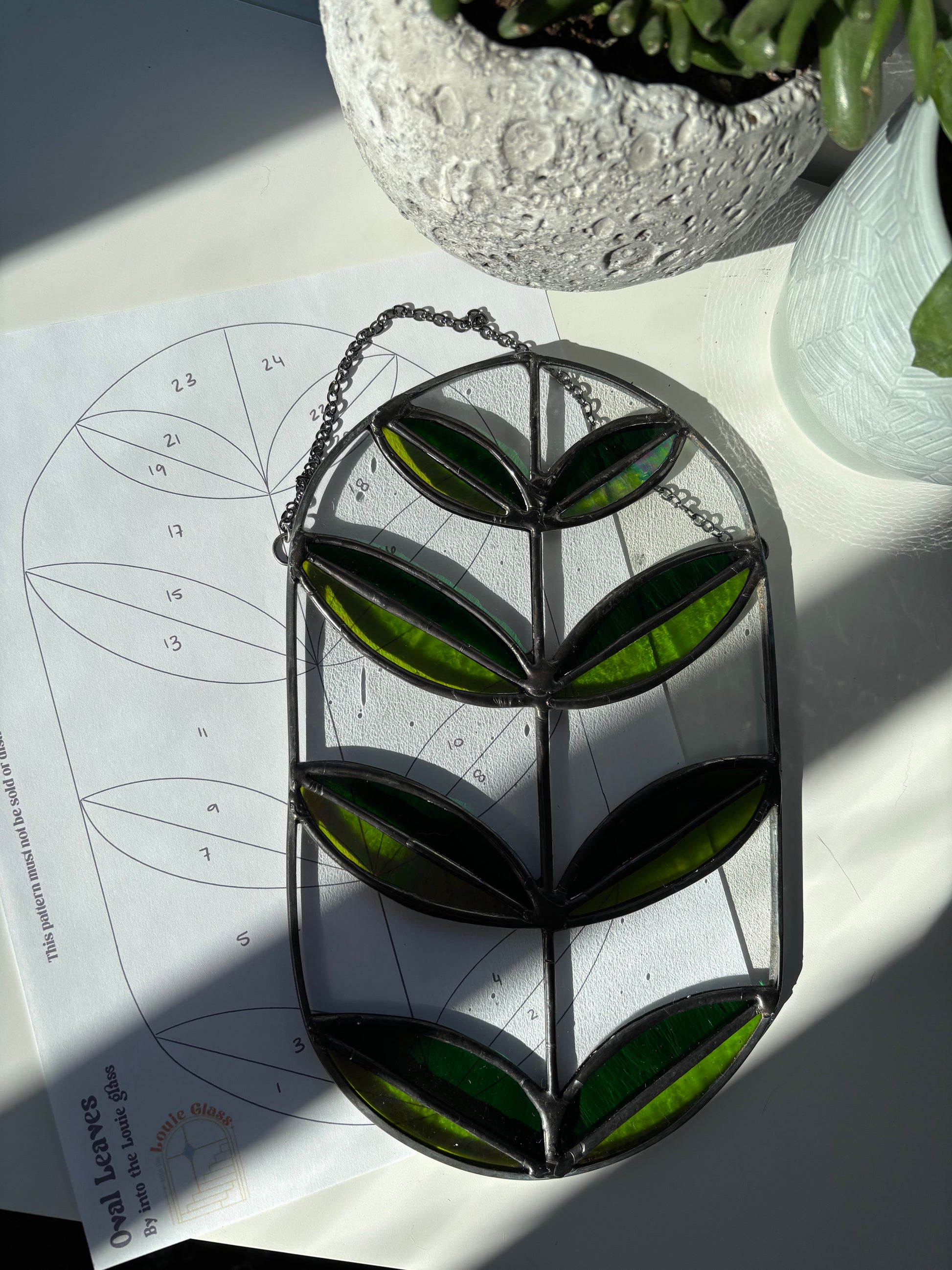 Create a beautifully balanced piece with this nature-inspired stained glass pattern. The finished design measures approximately 10” x 6” and features organic oval-shaped leaves that offer plenty of room to play with texture and colour.